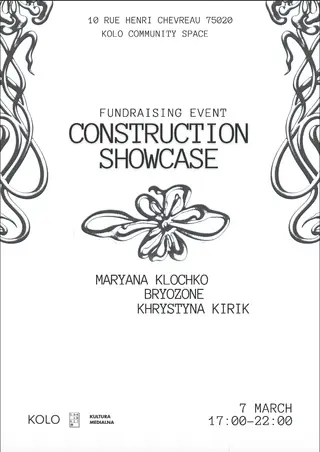 Construction Showcase takes place at TBA - KOLO community space in Paris, France on March 7, 2026. Featuring Maryana Klochko, Bryozone, Khrystyna Kirik. Ambient and Electronica sounds all night.