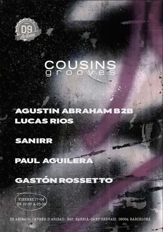 Cousin's Grooves present. Barcelona Edition on April 17, 2026 at D9 Aribau, Barcelona features electronic music performances DJ sets.