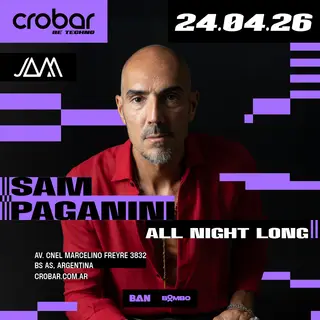Crobar Be Techno Pres.: Sam Paganini on April 24, 2026 at Crobar - Buenos Aires, Buenos Aires features Sam Paganini performing techno DJ sets.