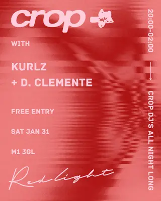 CROP Redlight Residency 001 on January 31, 2026 at Redlight, Manchester features KURLZ and d. clemente performing deep house DJ sets.