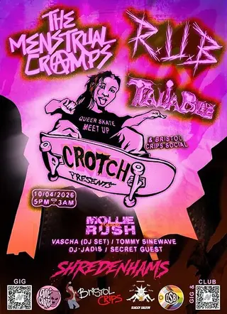CROTCH (clubnight) takes place at Shredenhams in Bristol, United Kingdom on April 10, 2026. Featuring Mollie Rush, K-Rush. Breakbeat and Hardcore sounds all night.