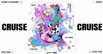 CRUISE 𐙚 ‧₊˚ domizako × OTEC MIREC × wyme × misxo takes place at Šafko Klub in Bratislava, Unknown on Saturday, February 28, 2026. Featuring OTEC MIREC, wyme. Kuduro, Latin Bass.