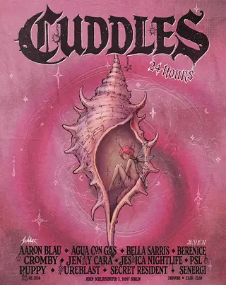 Cuddles [24 HOURS] on May 23, 2026 at ÆDEN, Berlin features Aaron Blau, Agua con gas, Bella Sarris, Berenice, Cromby, Jenny Cara, Jessica Nightlife, PSL, puppy, Pureblast and SENERGI performing techno DJ sets.