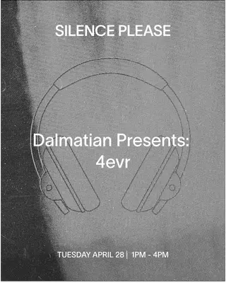 Dalmatian presents: 4evr takes place at Silence Please in New York, United States on April 28, 2026. Ambient and Experimental sounds all night.