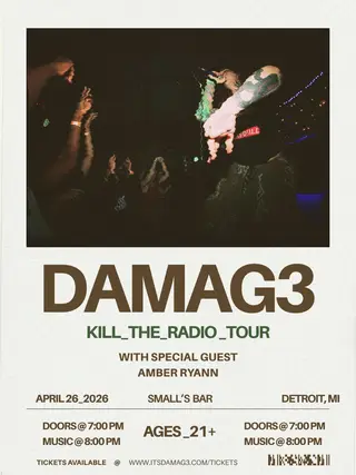 DAMAG3 Kill the Radio Tour takes place at Small's in Detroit, United States on April 26, 2026. Hip-Hop and Pop sounds all night.