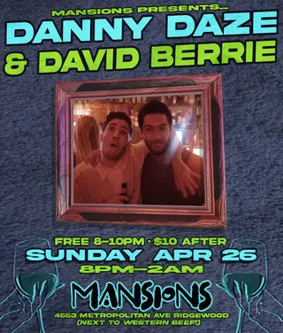 Danny Daze & David Berrie takes place at Mansions in New York City, United States on April 26, 2026. Featuring Danny Daze, David Berrie. Techno and House sounds all night.