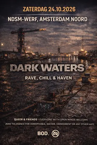 DARK WATERS Noord takes place at TBA - Amsterdam Noord in Amsterdam, Netherlands on October 25, 2026. Techno sounds all night.