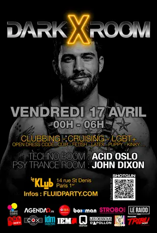 DARKXROOM takes place at Le Klub in Paris, France on April 17, 2026. Featuring Acid Oslo, JOHN DIXON. Techno and Psytrance sounds all night.
