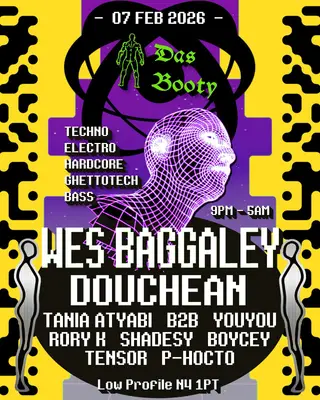 Das Booty: Industrial Funk on February 7, 2026 at Low Profile Studios, London features Wes Baggaley performing techno DJ sets.