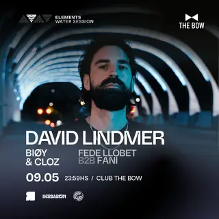 David Lindmer & MORE ARTISTS - by ELEMENTS, THE BOW CLUB takes place at TBA - The Bow, Costanera in Buenos Aires, Argentina on May 9, 2026. Featuring David Lindmer, BIØY. Techno and Electronica sounds all night.