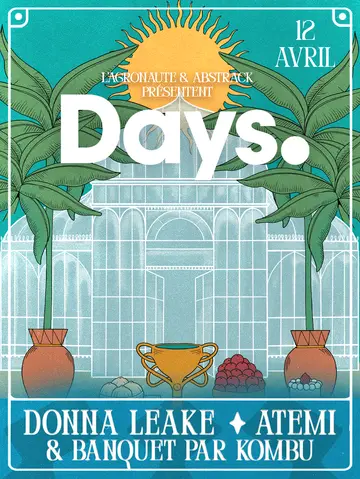 DAYS. with Donna Leake takes place at L'agronaute in Nantes, Unknown on Sunday, April 12, 2026. Featuring Donna Leake. Disco, Dub.