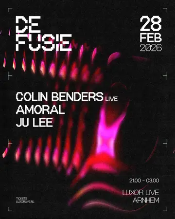 De Fusie feat. Colin Benders takes place at Luxor Live in Arnhem, Netherlands on Saturday, February 28, 2026. Featuring Colin Benders, AMORAL. Techno.