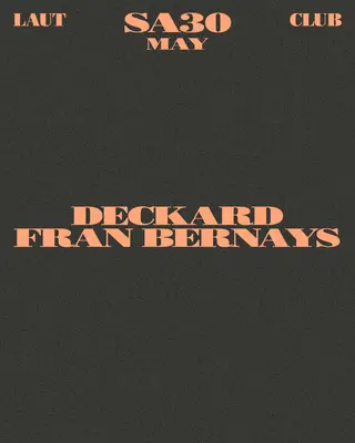 Deckard + Fran Bernays on May 30, 2026 at LAUT, Barcelona features Deckard and Fran Bernays performing techno DJ sets.