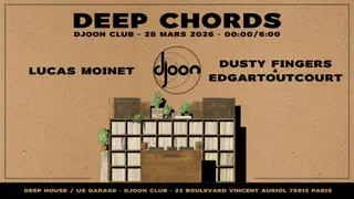 Set at Djoon, DEEP CHORDS: Lucas Moinet-Dusty Fingers-Edgartoutcourt 2026 brings together artists and fans in Paris on Saturday, March 28, 2026. This event brings together artists and fans who share a passion for dance music culture and House, Garage sounds.