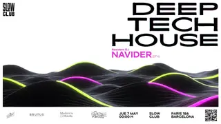 ★★★ Deep, Tech, House by Navider is a Techno event in Barcelona featuring Navider. The event will occur at Slow Club on May 7, 2026. Attendees can look forward to a night of deep and tech house sounds.