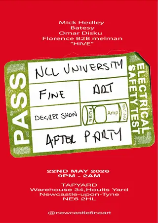 Degree Show After Party on May 22, 2026 at Tapyard, Newcastle features electronic music performances house DJ sets.
