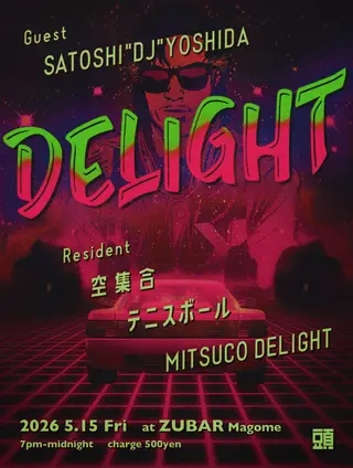 DELIGHT on May 15, 2026 at ZUBAR, Tokyo features electronic music performances techno DJ sets.