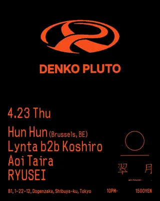 DENKO PLUTO takes place at Mitsuki in Tokyo, Japan on April 23, 2026. Featuring Lynta, KOSHIRO. Techno and House sounds all night.