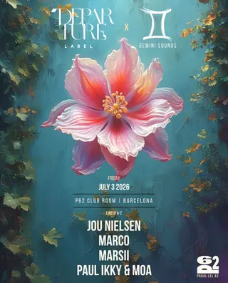 Departure Label x Gemini Sounds presents a Progressive House night at Paral•lel 62 in Barcelona, Spain, on July 3, 2026. The lineup features Jou Nielsen, known for his contributions to the Progressive House genre. Marco, hailing from the UK, brings his signature Deep House sounds. Marsii is also on the bill, recognized for his work within the Progressive House scene. Moa (VA) adds her unique perspective, while Paul Ikky rounds out the event with his deep-rooted influence in electronic music. This event focuses on Progressive House and Deep House genres.