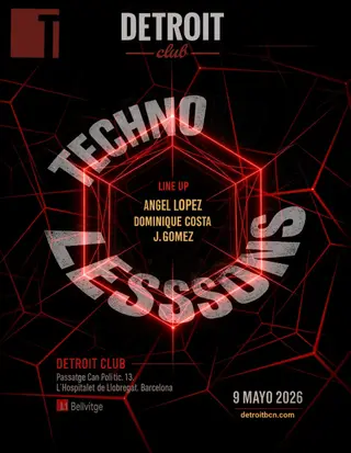 DETROIT CLUB presents: TECHNO SESSIONS takes place at DETROIT CLUB in Barcelona, Spain on May 9, 2026. Featuring AngelLopez, Dominique Costa.