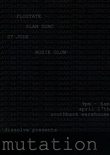 dissolve presents: mutation takes place at Southbank Warehouse in Paris, France on Friday, April 17, 2026. Techno.