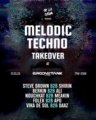 DLC at Groovetank on May 1, 2026 at Groovetank Live, London features Chérie, Steve Brown, Berkin, Ali (4), NouchKat, MEAKIN and Folek performing techno DJ sets.