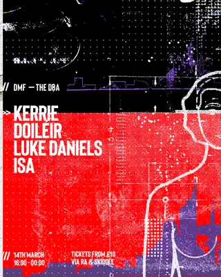 DMF on March 14, 2026 at The DBA, Paris features Kerrie, Doiléir and Luke Daniels performing techno DJ sets.