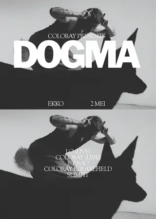 DOGMA on May 2, 2026 at EKKO, Utrecht features Coloray, Slimfit, Jerrau and Axefield performing experimental DJ sets.