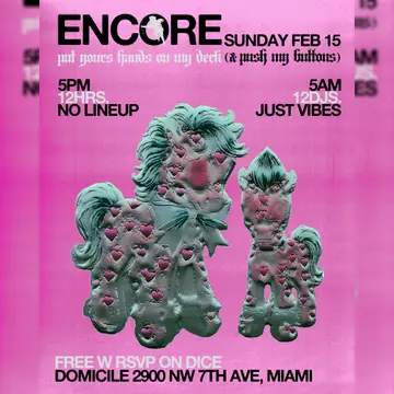 Domicile X ENCORE INVITES takes place at Domicile in Detroit, United States on Sunday, February 15, 2026. Techno, Dub Techno.