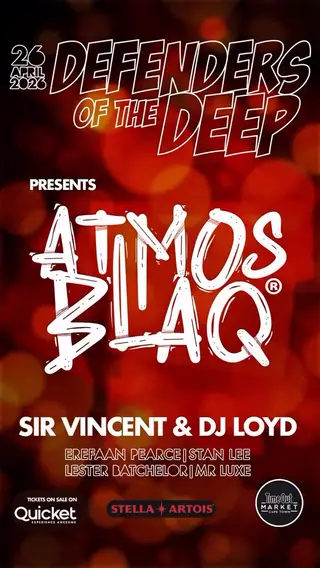 DOTD - Defenders Of The Deep takes place at Time Out Market Cape Town in Cape Town, South Africa on April 26, 2026. This event will feature Atmos Blaq, known for his contributions to the deep house and Afro house genres. Atmos Blaq is recognized for his unique style that blends traditional African rhythms with modern house music elements. His work often reflects the cultural influences of his South African origin. The event will showcase both deep house and Afro house genres, highlighting the rhythmic and melodic diversity within these styles.