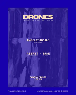 DRONES takes place at Paul-Gerhardt-Kirche in Berlin, Germany on May 24, 2026. Ambient and Drone sounds all night.