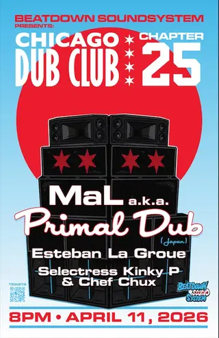 DUB CLUB CHICAGO 25 takes place at TBA - BEATDOWN SOUND in Chicago, United States on April 11, 2026. Featuring Selectress Kinky P. Bass and Dub sounds all night.