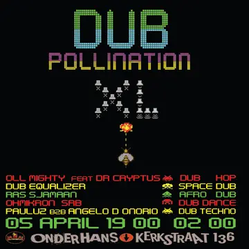 Dub Pollination XL takes place at Onder Hans in Amsterdam, Netherlands on April 5, 2026. Featuring Angelo D'onorio. Dub.