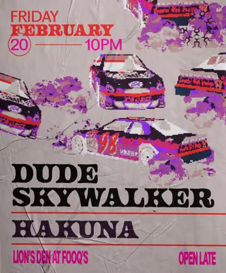 Dudę Skywalker + Hakuna takes place at Lion's Den in Detroit, United States on February 20, 2026. Featuring Dude Skywalker.