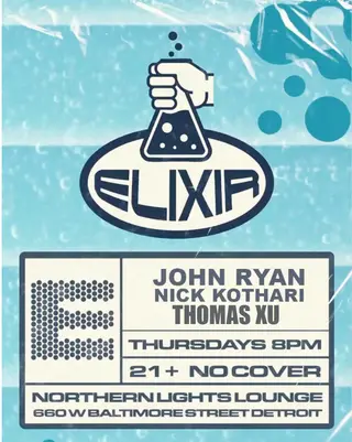 Set at Northern Lights Lounge, E L I X I R THURS. wsg Thomas Xu! • dr disko dust • Nick Kothari 2026 brings together artists and fans in Detroit on Thursday, April 30, 2026, featuring DR. Disko Dust, Nick Kothari, Thomas Xu and 0 more artists. This event brings together artists and fans who share a passion for dance music culture and Acid, Disco sounds. Northern Lights Lounge has hosted Acid events in Detroit as part of the area's regular club programming. It draws 3 artists and fans seeking authentic Acid music in Detroit. Designed for a discerning audience, Northern Lights Lounge's programming draws fans of Acid music across Detroit. The production is designed to showcase the depth and diversity of contemporary electronic music.