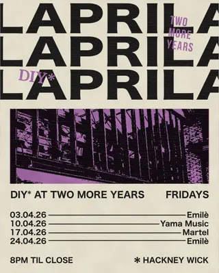 Two More Years in London, United Kingdom hosts Easter Friday - DIY takeover (Deep House by the canal) on April 3, 2026. Featuring EMILE. House and Disco sounds all night.