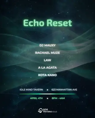 Idle Mind Tavern in New York City, United States presents Echo Reset 2026, a curated electronic music experience on Saturday, April 4, 2026. This event brings together artists and fans who share a passion for dance music culture and House, Tech House sounds.