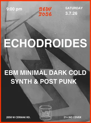 Echodroides takes place at TBA - 2058 West Cermak in Chicago, United States on March 7, 2026. Featuring EchoDroides. EBM sounds all night.