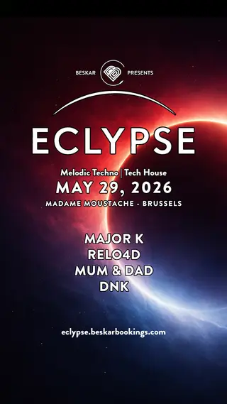ECLYPSE takes place at Madame Moustache in Brussels, Belgium, on May 29, 2026. This event features a lineup of artists known for their contributions to the melodic techno and tech house genres. Major K is recognized for his unique sound within the melodic techno scene. RELO4D, also part of the lineup, brings a tech house influence with a focus on rhythmic elements. Additionally, Mum & Dad, a duo from Belgium, adds their local flavor to the event with their distinctive approach to tech house music. The evening will showcase a blend of techno and tech house, reflecting the styles of the performing artists.