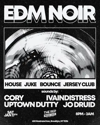 EDM NOIR at The REP Music Cafe in New York on Saturday, January 17, 2026. ivaindistress headlines the event. Full lineup and event details are listed on this profile.