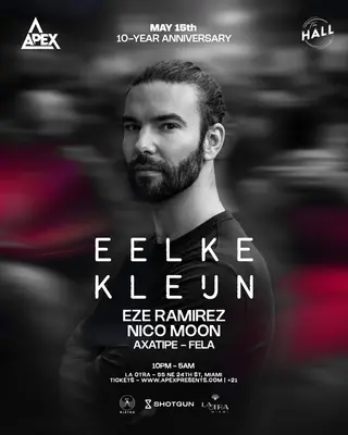 EELKE KLEIJN ( Apex 10 Year Anniversary ) on May 15, 2026 at La Otra Wynwood, Miami features electronic music performances progressive house DJ sets.