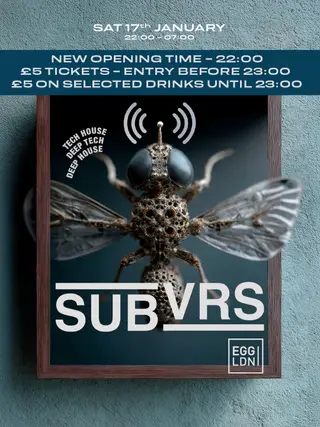 Egg LDN Pres: SUBVRS - Tech House, Deep Tech & Deep House takes place at Egg London in London, United Kingdom on January 17, 2026.
