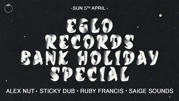 Experience Eglo Records Bank Holiday Special: Sticky Dub, Alex Nut, Ruby Francis, Saige Sounds 2026, a significant moment in London, United Kingdom's electronic music calendar on Sunday, April 5, 2026, featuring Alexander Nut, Sticky Dub, Saige Sounds and 0 more artists. This event brings together artists and fans who share a passion for dance music culture and House, Jazz sounds.