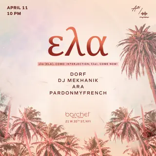 Ela Rooftop on April 11, 2026 at Barchef, New York City features electronic music performances house DJ sets.