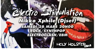 Electro Stimulation with Nikko Xphile (Rock/Synthpop/Electroclash/EBM) at Holy Holster Bar 2026 takes place at the renowned TBA - Holy Holster Bar - 4 Rue Basfroi, 75011 Paris, France in Paris, France on Saturday, March 28, 2026. This event brings together artists and fans who share a passion for dance music culture and Electro, Electronica sounds.