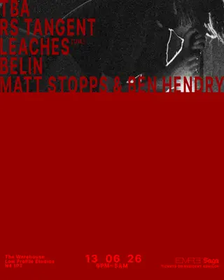 EMARE X SAGA SONICA takes place at Low Profile Studios in London, United Kingdom, on June 13, 2026. The lineup features Autumns, known for blending techno with post-punk influences and hailing from Derry, Northern Ireland. RS Tangent, also part of the billing, specializes in techno and is recognized for his work on the label 3TH. Leaches brings a distinct dub sound to the event, contributing to the genre's exploration within the lineup. Lastly, Belin, an emerging artist in the techno scene, rounds out the event. The genres featured at EMARE X SAGA SONICA include techno and dub.