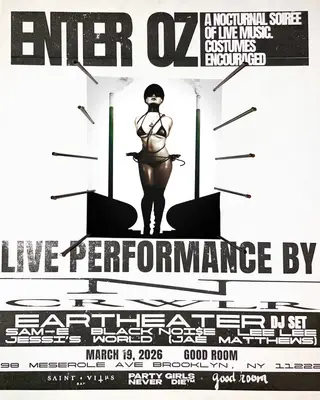 Enter Oz: NGHTCRWLR (live), Eartheater (dj set), Sam-E + more takes place at Good Room in New York City on March 19, 2026. Featuring Eartheater, Black Noi$e.