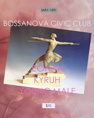 EÒNAN + KYRUH + Young Male takes place at Bossa Nova Civic Club in New York City, United States on May 16, 2026. Featuring EÒNAN, KYRUH, Young Male. Techno and Minimal Techno sounds all night.