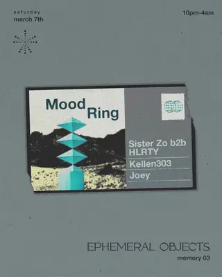 Ephemeral Objects: Memory 03 on March 7, 2026 at Mood Ring, New York features Sister Zo, HLRTY and Kellen303 performing DJ sets.