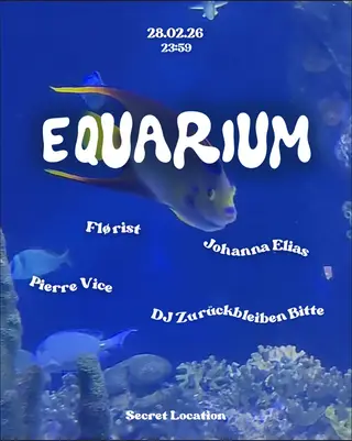 Equarium #9 takes place at TBA - Secret Location in Berlin, Germany on February 28, 2026. Featuring Flørist, Johanna Elias, Pierre Vice, DJ Zurückbleiben Bitte. Progressive House and House sounds all night.